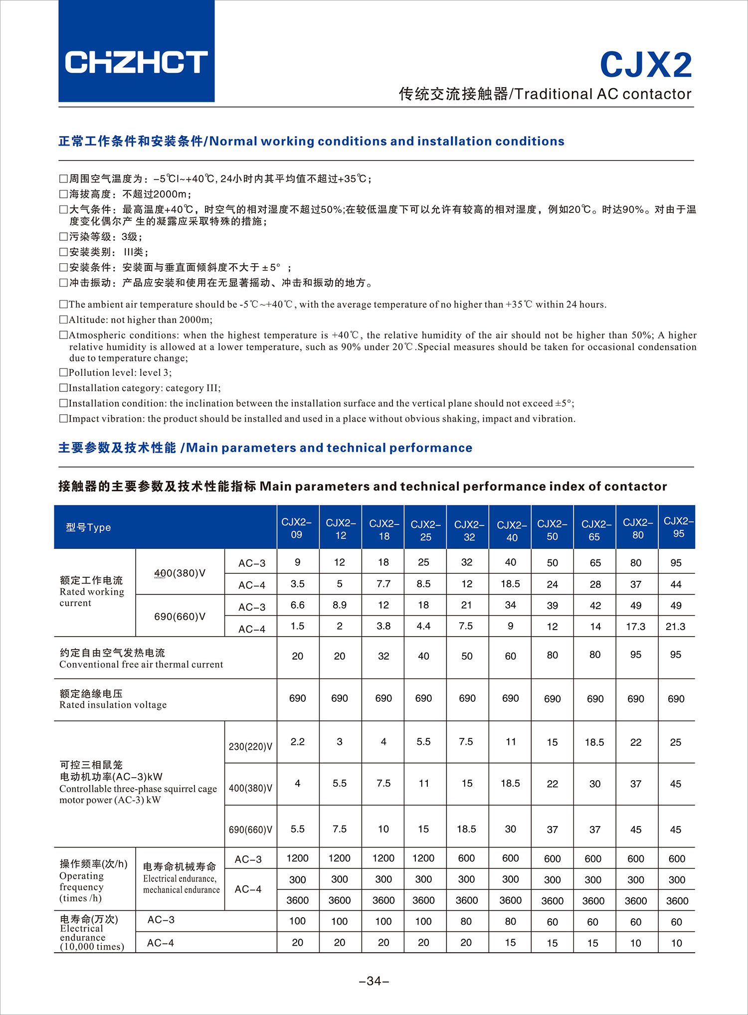 CJX2 傳統交流接觸器產品說明書
