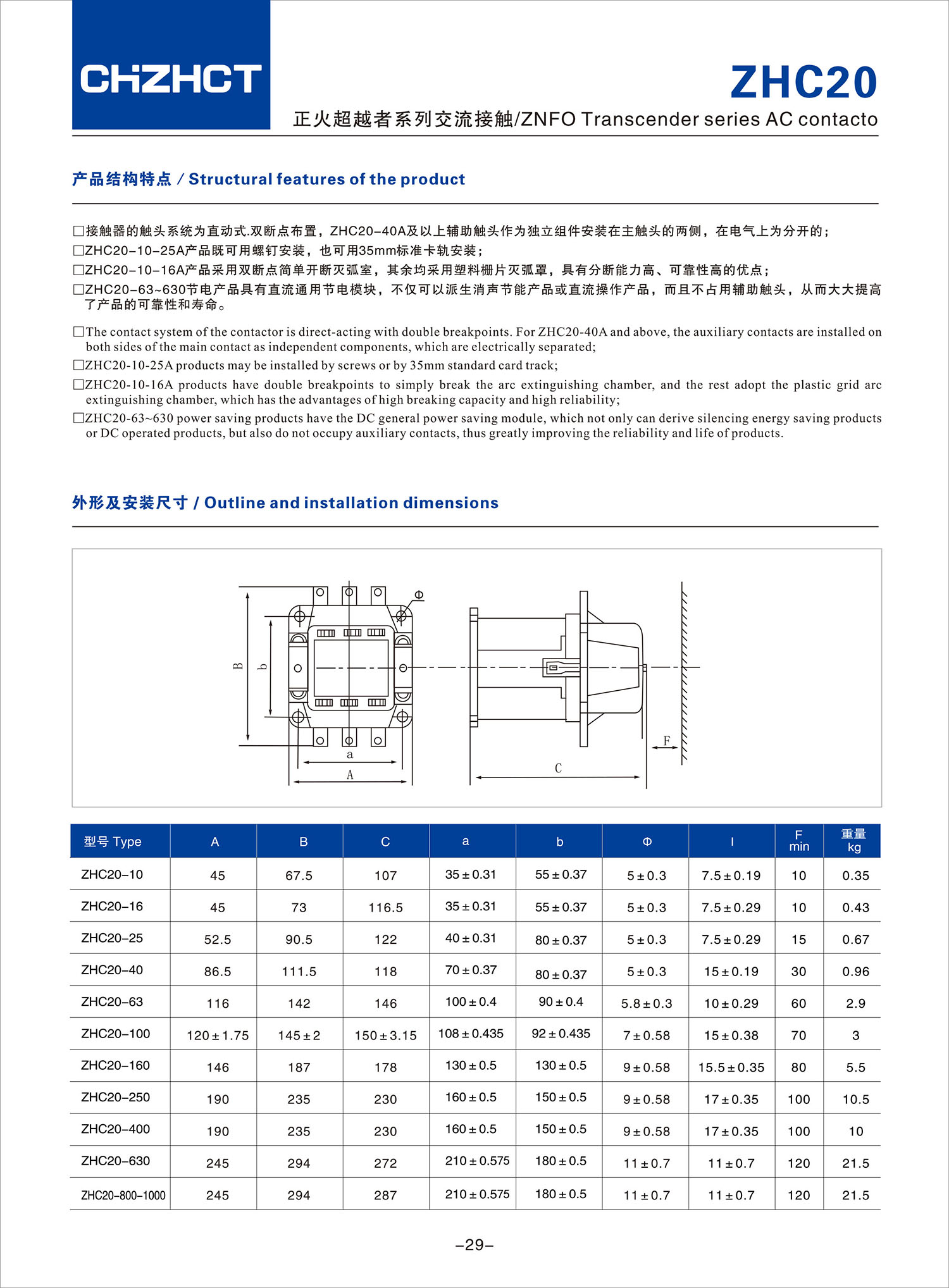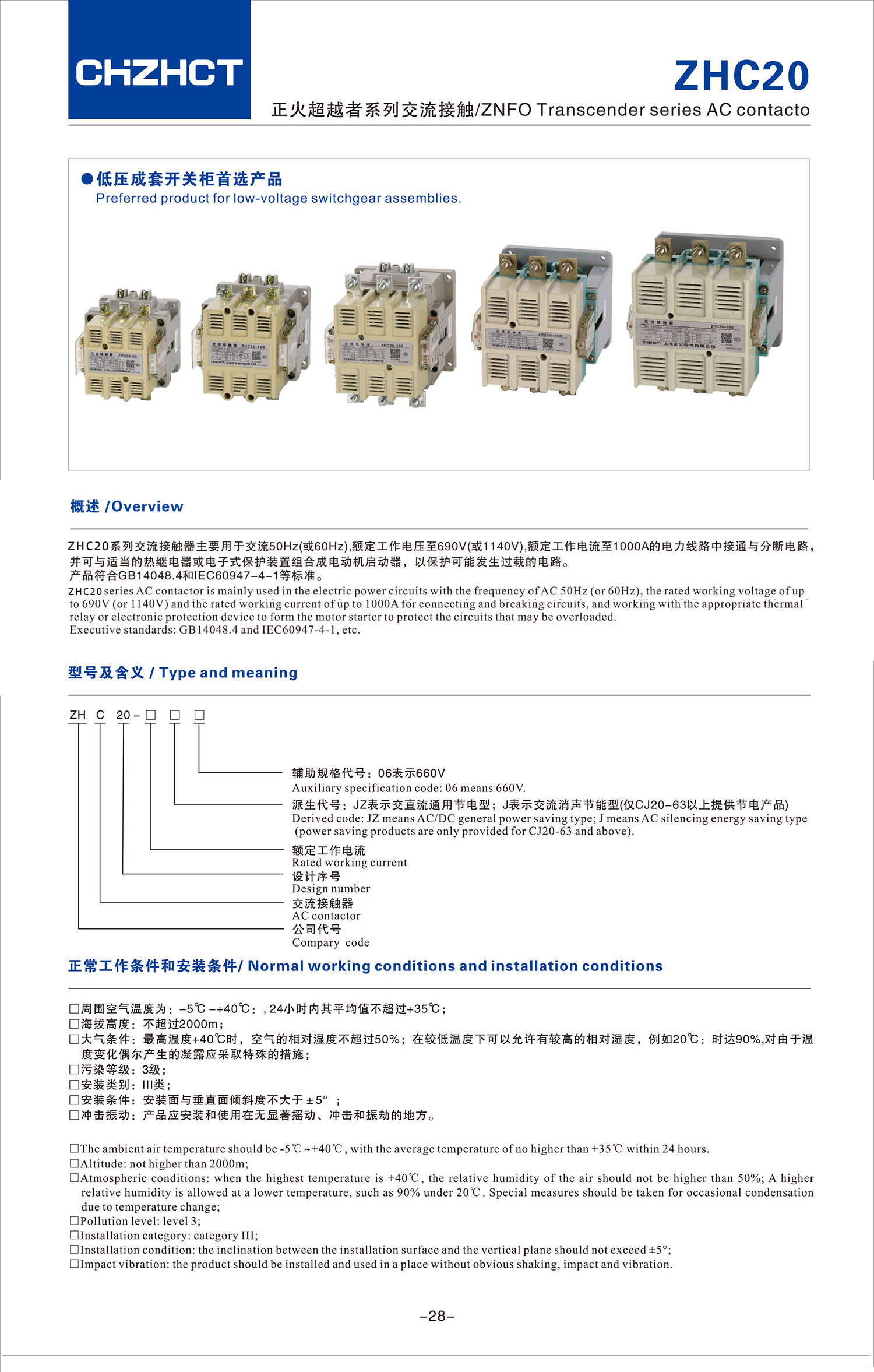 ZHC20 正火超越者系列交流接觸器產品說明書