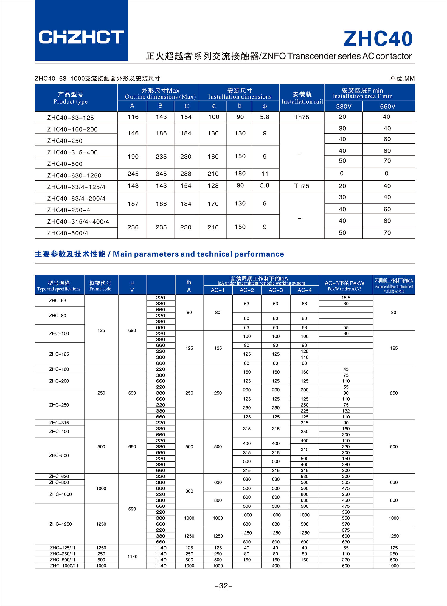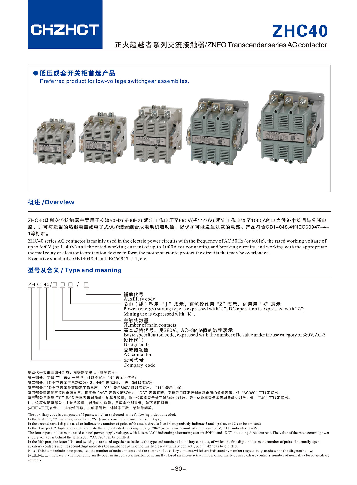 ZHC40 正火超越者系列交流接觸器產品說明書
