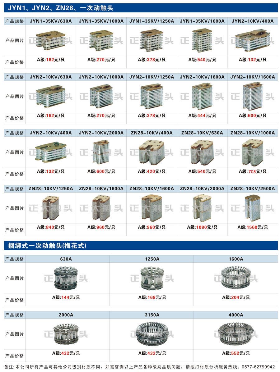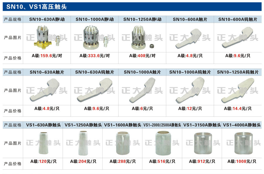 二、高壓觸頭產(chǎn)品規(guī)格及圖片(備注:以下配件價格不完全正確,型號及規(guī)格需報價咨詢銷售部)