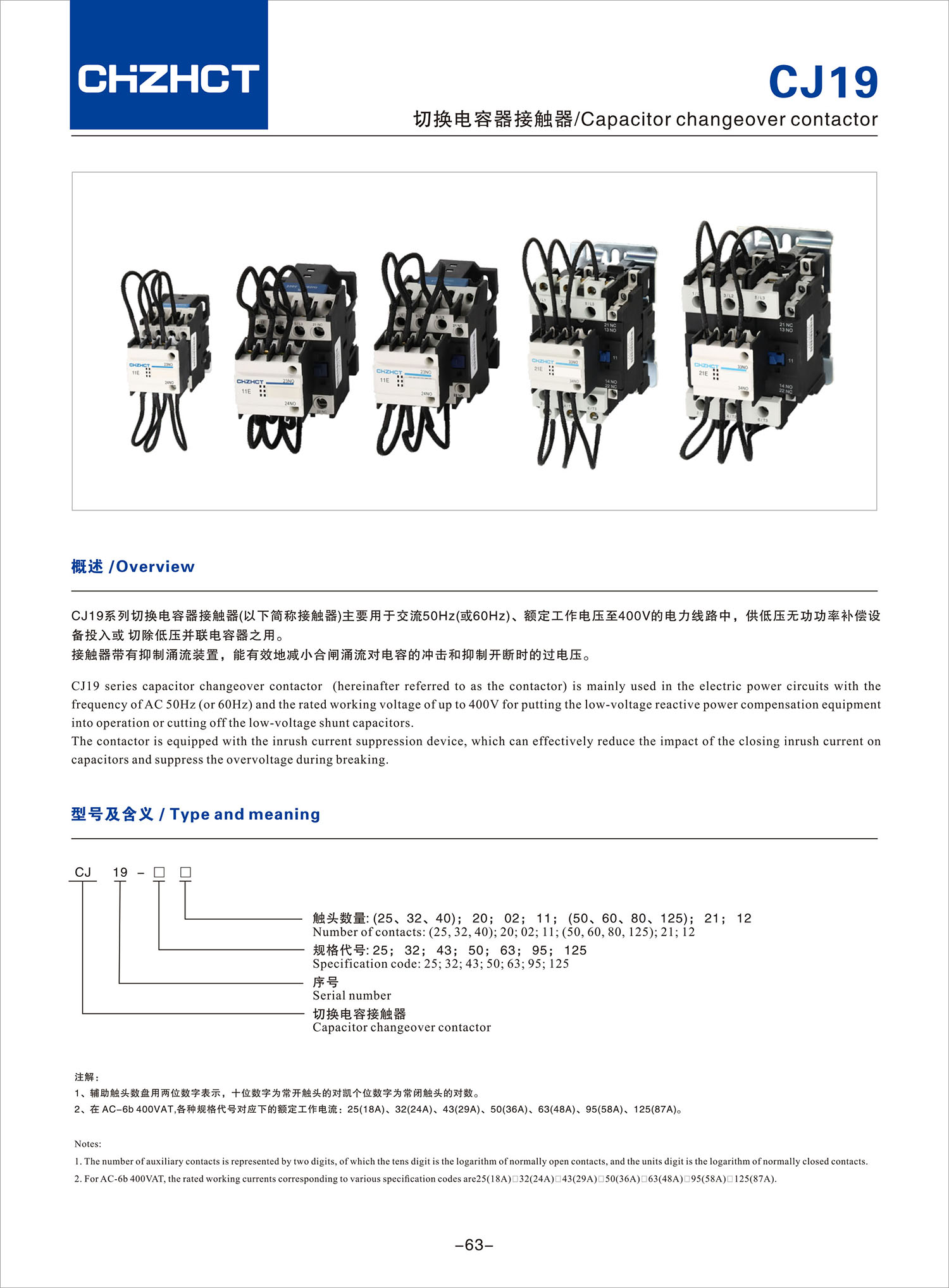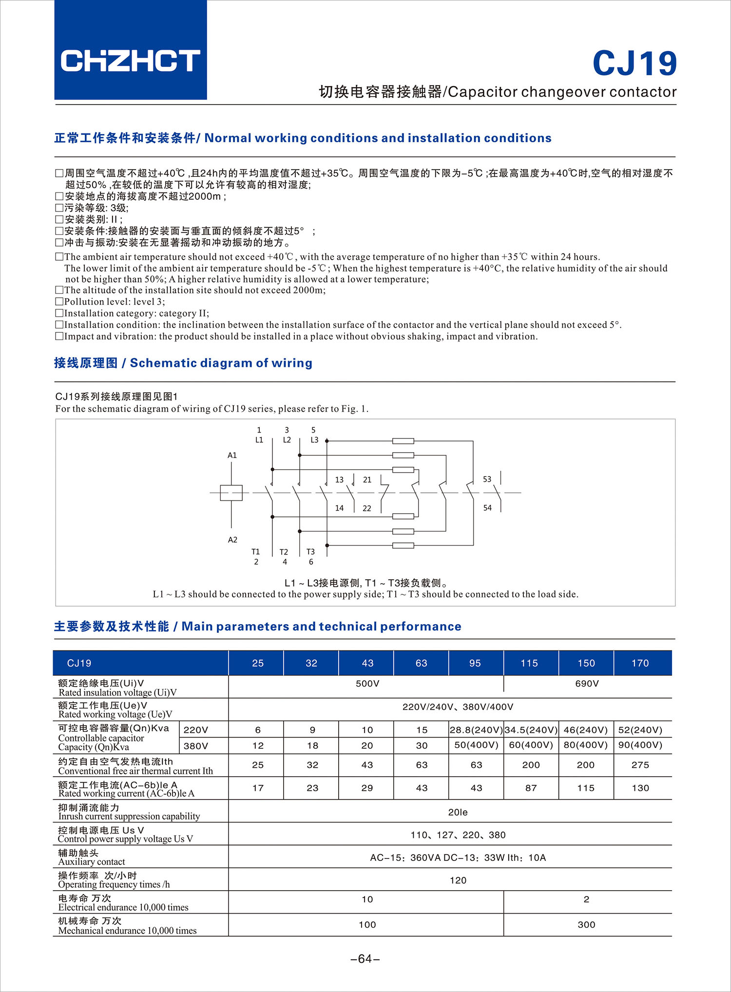 CJ19切換電容器接觸器產品說明書