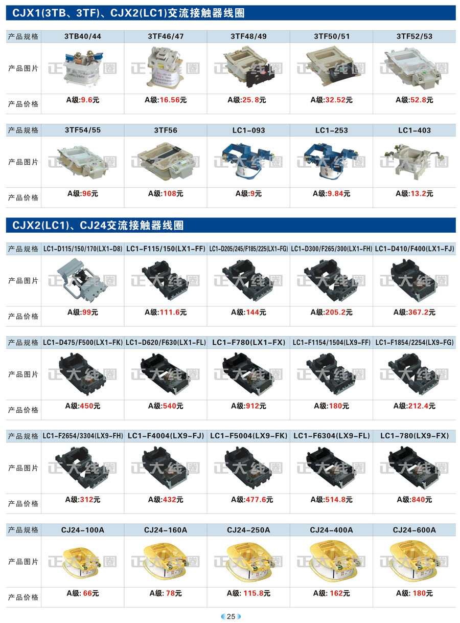 CJX1(3TB、3TF)、CJX2(LC1)交流接觸器線圈、CJX2(LC1)、CJ24交流接觸器線圈