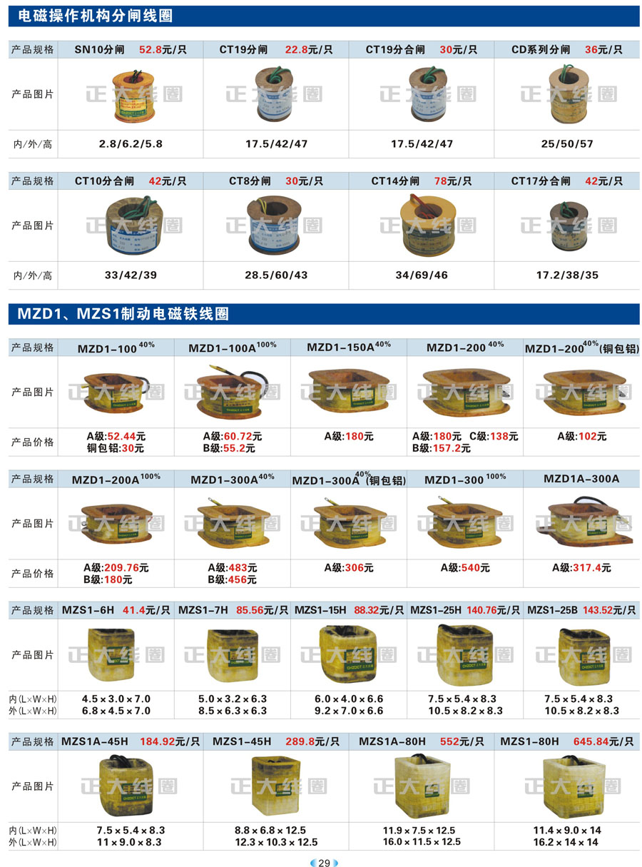 電磁操作機構分閘線圈、MZD1、MZS1制動電磁鐵線圈