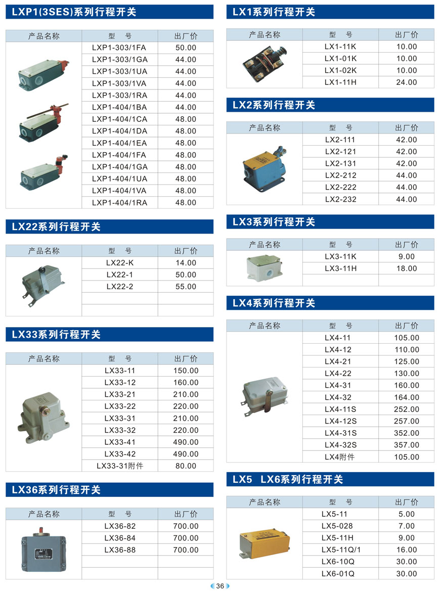 LX22、LX33、LX36、LX1、LX2、LX3、LX4、LX5、LX6系列行程開關