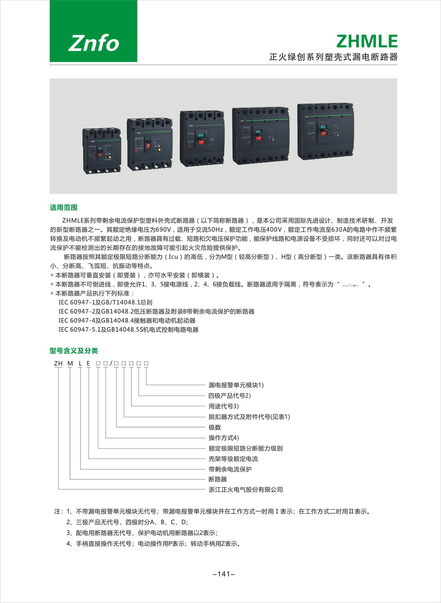 ZHMLE系列塑殼式漏電斷路器產品說明書