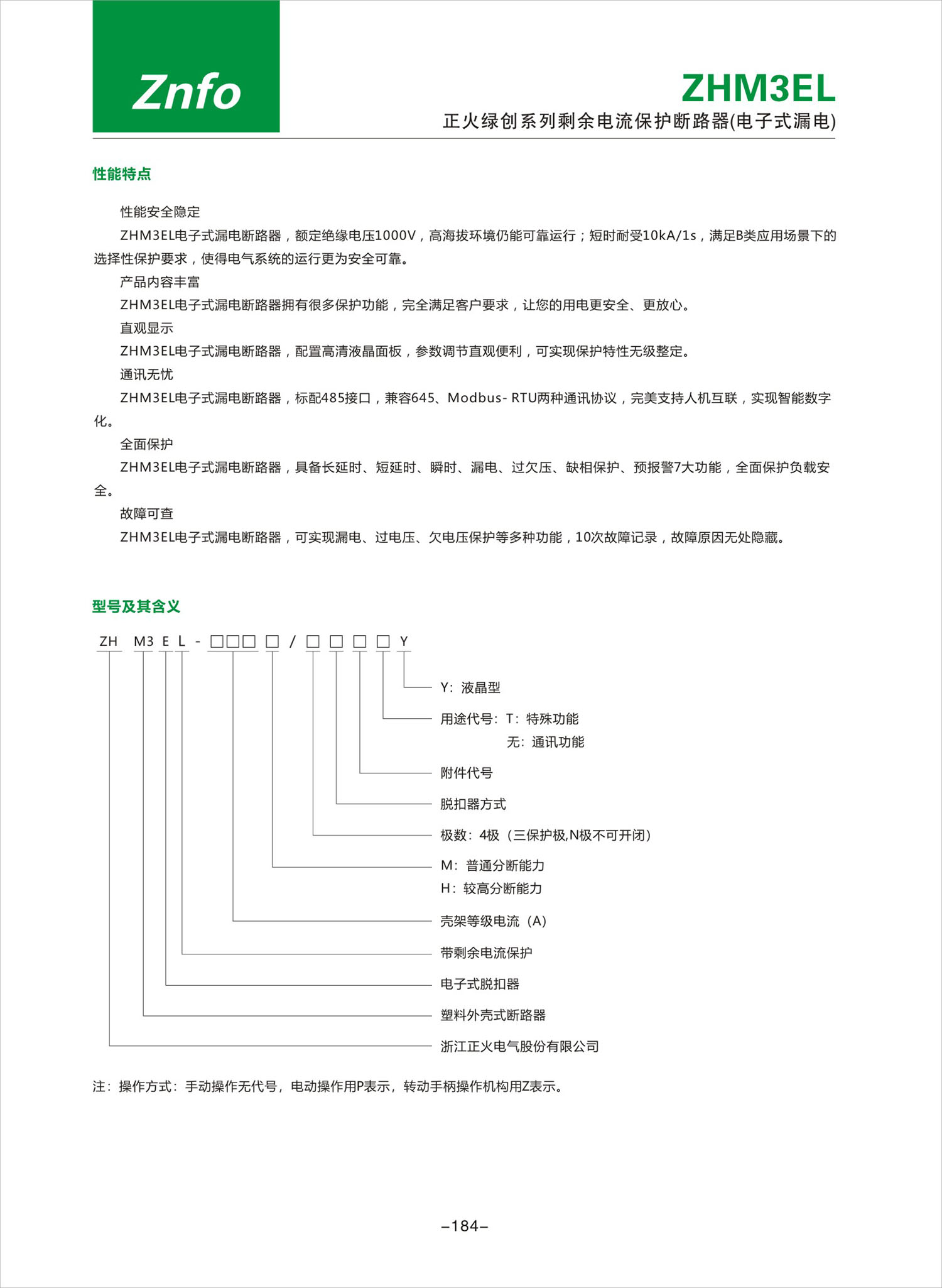 ZHM3EL系列剩余電流保護斷路器(電子式漏電)產品說明書